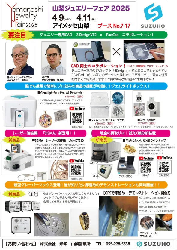 2025年4月9日(水)〜11日(金)山梨ジュエリーフェア2025に出展致します。
