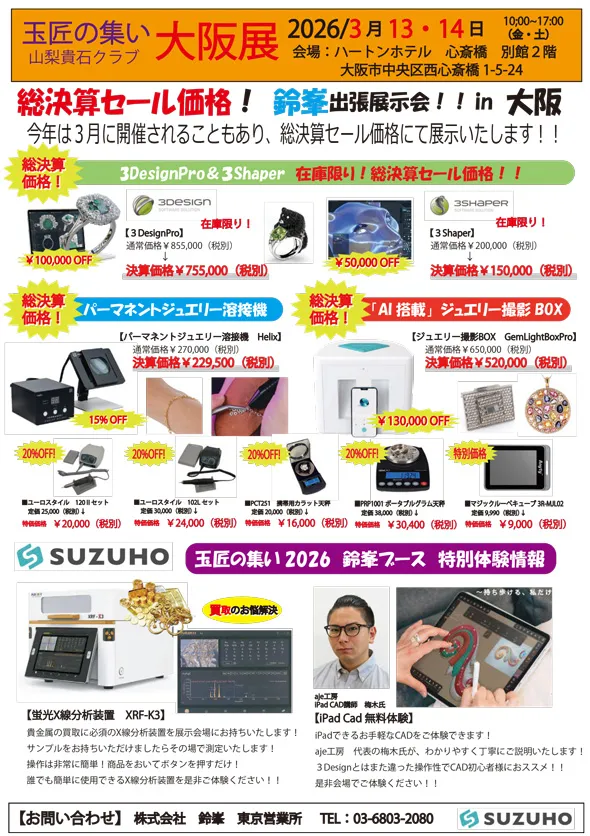2026年3月13日(金)14日(土)玉匠の集い山梨県貴石クラブ大阪展に出展致します。