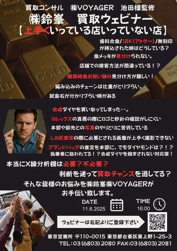 【買取店様必見】接客の極意と最新鑑定機材ウェビナーを開催いたします!